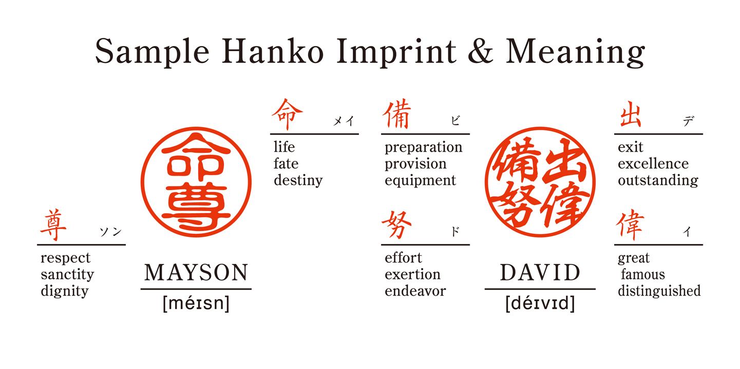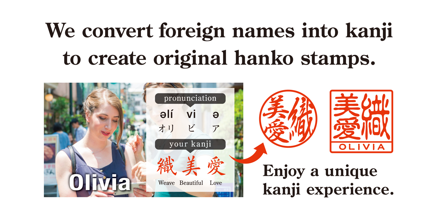 Because hanko stamps are usually engraved with Japanese kanji, KANJI de HANKO makes it possible for overseas customers to enjoy this tradition using kanji created especially for their names.